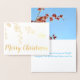 Merry Christmas and New Year's wish greeting card, with a frosty branch of crabapples, in gold foil on the front and back, and in full colour inside. Merry Christmas is on the front, and if you flip it over to the back you see and a Happy New Year! Sentiment and colour picture inside. Photos by Kristina.