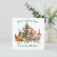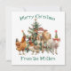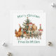 Christmas Card with farm animals waering stocking hats in front od a christmas tree. Merry Christmas From the you name