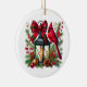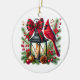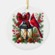 This ceramic Christmas ornament is shown with a festive cardinal art print.