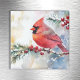 Celebrate the magic of the season with this mylar-covered magnet showcasing a striking illustration of a red cardinal perched gracefully on a snow-kissed branch. The tranquil snowy background beautifully frames the bird’s bold crimson feathers, evoking the serene charm of a winter wonderland.