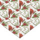 A red cardinal feasts on white mistletoe berries surrounded by Christmas greenery against a snow white background