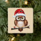This charming design presents a detailed illustration of a brown and white owl perched on a branch. The owl wears a red Christmas cap with white snowflakes, adding to the festive spirit. His large, captivating eyes attract attention, while a small red gift with a white ribbon subtly lies at the base of the branch, suggesting the generous nature of the holiday season. This design captures the warmth and joy of Christmas by representing this iconic winter bird in a cozy and celebratory setting.