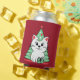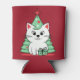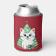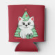 Cute white Christmas cat is posing with a Christmas tree and Christmas gift