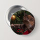 Tabby cat fixes ornaments on Christmas tree pin back button
