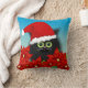 Christmas Cat in Santa Hat Amid Poinsettia Cushion