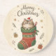 Christmas Cat in Stocking Coaster