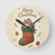 Christmas Cat in Stocking Round Clock