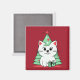 Cute white Christmas cat is posing with a Christmas tree and Christmas gift