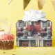 A festive red door is adorned with a wreath and flanked by vibrant poinsettias welcoming guests with a "Merry Christmas" doormat and pet tabby cat