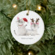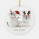 Cute Christmas ornaments with custom names featuring an illustration of two siamese cats wearing a santa hat and antlers. Perfect for cat owners of two.