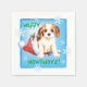 Celebrate the holiday season with a cute Cavalier King Charles Spaniel puppy sitting in a Santa hat amid snowflakes and the words, Happy Howlidays!
