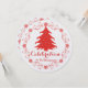 Christmas celebration round custom invitation with a festive red lace covered Christmas tree with silver and red ornaments bordered by delicate swirling red stars. Add your personal party information on the front and back using the template provided. Please contact me through my store length if you have questions or need some help. Matching Christmas party supplies are available in my studio store on the Zazzle site.