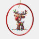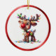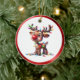 This ceramic Christmas Ornament is shown in a round shape with a festive holiday Rudolph print.