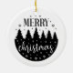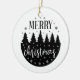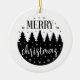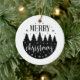 This ceramic Christmas Ornament is shown in a festive holiday forest print in a black and white colour design.