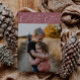 Elegant holiday card featuring a typography text that says "Christmas Cheer" in script font with an illustration of a mistletoe. Add another photo on the back along with your message. Background is pink.