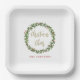 Christmas Cheer Wreath Gold Script Personalized Paper Plate