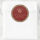 This elegant return address sticker features a burgundy red circle on a background pattern of burgundy, mint green and gold faux foil chevrons. Personalise the design with your monogram initial and family name in gold serif font, with your address below in sans serif.