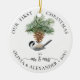 This special wedding keepsake ornament is a perfect holiday gift for your favourite newlyweds, with a cute chickadee perched on a pine cone on the front, and a photo of the new couple on the back.