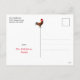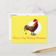 The Christmas postcardcard is in yellow with a chicken wearing a Santa hat .
