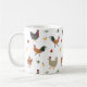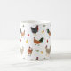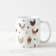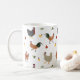 Pattern featuring illustrations of chickens and chicks with santa hats, scarves, Christmas ornaments, holly, evergreen sprigs, and candy cane