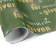 Religious gold and white Christmas text with sparkling stars on a green background.