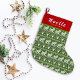Green Christmas stockings with sleighs, elk and geometric patterns, with names written on them, suitable for Christmas home decorations and can be given as gifts to relatives and friends.