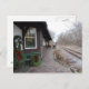 Scene of the Watertown, WI Chicago and Northwestern Depot around Christmas time. No snow yet at the time, but many great wreaths and decorations on the building as well as the old baggage cart outside by the tracks.
