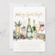 Cheers to the holiday season with this delightful Making Spirits Bright invitation! Featuring watercolor Christmas drinks, cocktails, and festive elements, surrounded by garland and gifts, this design is paired with beautiful gold typography, creating a lively and cheerful atmosphere.