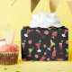 Cool and festive retro inspired pattern featuring peppermints and assorted holiday spirits in festive glasses on a black background.