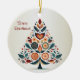Christmas Colourful Tree Scandinavia Folk Art Ceramic Ornament. Unique, beautiful, stylish design. Easy to be personalised. Font style, size and colours can be changed. Matching items are available.