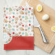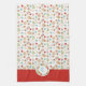 This cute Christmas cookie patterned holiday kitchen towel features festively decorated sugar Christmas cookies in the shapes of snowflakes, snowmen, Christmas trees, ornaments, and stars. Personalise with a monogram for a sweet custom gift for the cookie baker in your life! Happy and bright, this apron is the perfect holiday gift for kids sugar cookie decorating with Grandma!