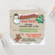 Super fun Christmas Cookies Swap or Exchange party invitation with Santa, Christmas Tree, and a gingerbread man that's been bitten all on a weathered woodgrain background with snow. Great for a kids or adult Christmas party. Hand drawn illustration by McBooboo.