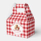 Fill these favour boxes with wonderful Christmas cookies and sweet treats to give to family, friends, coworkers, clients or hand them out at a work party or function. The favour box has a circular design with a red and white plaid background, a watercolor image of Christmas cookies and fully customisable text to suit your needs.