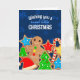 Fun Christmas card for holiday baking featuring chocolates, frosted cookies, gingerbread man, cupcake and cinnamon roll, personalised with your text on the front and inside, perfect for gifting your list with Christmas cookies or other sweets.