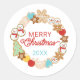 This cute Christmas cookies wreath surrounds text reading "Merry Christmas". Add the year for a personalised gift label to attach to baked goods, treat bags, gifts, or homemade crafts!