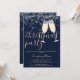 An elegant Christmas party invitation featuring champagne glasses, snowflakes and signature script name. This stylish invitation can be personalised with your information in chic lettering on a winter blue background. Designed by Thisisnotme©