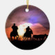 A cool country western cowboy ornament. A pair of ropers are driving their cattle home in a southwestern sunset.