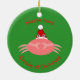 This ornament features a funny graphic design image of a crab wearing a santa hat. The crab is pink and has big silly eyes on stalks and huge pinchy claws. A fun gift for everyone whether Christmas makes them crabby or not