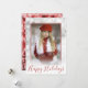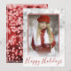 Christmas Custom Photo Silver Red Bokeh Borders Holiday Card