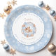 A little deer is almost here! Christmas boy Baby Shower Paper Plates with a cute winter sleeping baby deer in the wreath made with gingerbread cookies & winter berries in blue, white and beige. Easily personalise the text - Kate Eden Art