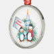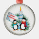 Christmas Cute Penguins And Candle custom ornament. Two cute penguins with scarves and behind them a candle and pine needles.