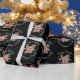 Have a little fun with your wrapping this year with this cute cartoon character reindeer wishing everyone a Merry Christmas and personalised message. Text can be changed. Cartoon reindeer character with red shinny nose with white script on a black background with white snowflakes and white script typography. If you need help personalising it more then send me an email and I would be happy to help. designsbykatz@gmail.com Happy Holidays!