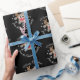 Christmas Cute Reindeer Script Snowflake Black Wrapping Paper