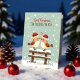 Two sweet winter birds in red Santa hats stand facing each other on a snow covered bench, surrounded by softly falling snow and tiny floating hearts against a soft mint green sky. Their rosy cheeks and gentle poses create a calm romantic feeling that suits cozy evenings and quiet moments together. This Christmas design is a warm way to say you are falling for someone more every day and to share holiday love that feels steady, sincere, and full of affection.