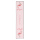 This design features a Christmas holiday cute colourful lights table runner with a whimsical fun festive pink flamingo, a tropical beach coastal living seaside, watercolor animal bird island tropics, stylish trendy calligraphy script, creative typography font text style, a simple minimalist block style lettering, Christmas holiday home decor, Christmas holiday table tableware decor, creative unique festive fun whimsy