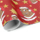 Christmas wrapping with an illustration of a smiling happy young African American man with a red and white Santa Claus costume and hat; Christmas holidays design on a red background with customisable text template for your name or message