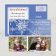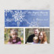 COLOR PALETTE: and white. DESIGN COLLECTION: A beautiful winter holiday Christmas card with room for 2 photographs. This beautiful, elegant and contemporary hand painted watercolor artwork of detailed snowflakes has been overlaid on a tone on tone damask pattern mixing the modern and classic in an entirely new way. The art and graphic design layout was created by Audrey Jeanne Roberts and is available in several different colour ways for the holidays. Simply add your family photographs via the easy to use template fields and customise the text for a wonderful option for your Christmas card list.