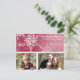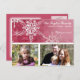 COLOR PALETTE: hot pink and white. DESIGN COLLECTION: A beautiful winter holiday Christmas card with room for 2 photographs. This beautiful, elegant and contemporary hand painted watercolor artwork of detailed snowflakes has been overlaid on a tone on tone damask pattern mixing the modern and classic in an entirely new way. The art and graphic design layout was created by Audrey Jeanne Roberts and is available in several different colour ways for the holidays. Simply add your family photographs via the easy to use template fields and customise the text for a wonderful option for your Christmas card list.