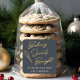 Custom-designed holiday baking gift stickers and labels featuring "baking spirits bright" modern gold calligraphy design with personalised name.