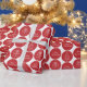 A Merry Christmas wrapping paper with a dark red circle pattern and custom family name. Customize the 'Merry Christmas' and the 'Family Name' texts in an easy way.
